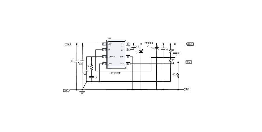 SP1215EF是一款降壓型PWM轉(zhuǎn)換器,典型輸出驅(qū)動電流為3.5A無需外加晶體管。設(shè)計允許它可在8V~40V的寬輸入電壓下工作。通過將COMP/EN腳邏輯電平拉低來控制外部關(guān)斷功能,使其進(jìn)入待機模式。外部補償使反饋控制具有良好的線電壓調(diào)整率和負(fù)載調(diào)整率,具有靈活的外圍設(shè)計。