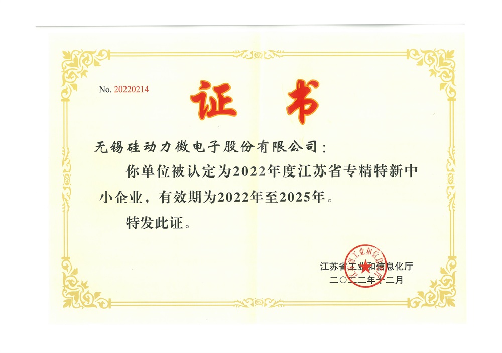 近日,無錫硅動力微電子股份有限公司(以下簡稱:無錫硅動力)被江蘇省工業(yè)和信息化廳評為江蘇省專精特新中小企業(yè),充分體現(xiàn)了省工業(yè)和信息化廳對無錫硅動力在創(chuàng)新能力、研發(fā)能力、技術(shù)實(shí)力及行業(yè)專業(yè)化程度等方面的高度認(rèn)可。有利于公司更好地專注核心業(yè)務(wù),有利于提升公司核心競爭力和行業(yè)影響力,對公司未來的發(fā)展產(chǎn)生積極的影響。